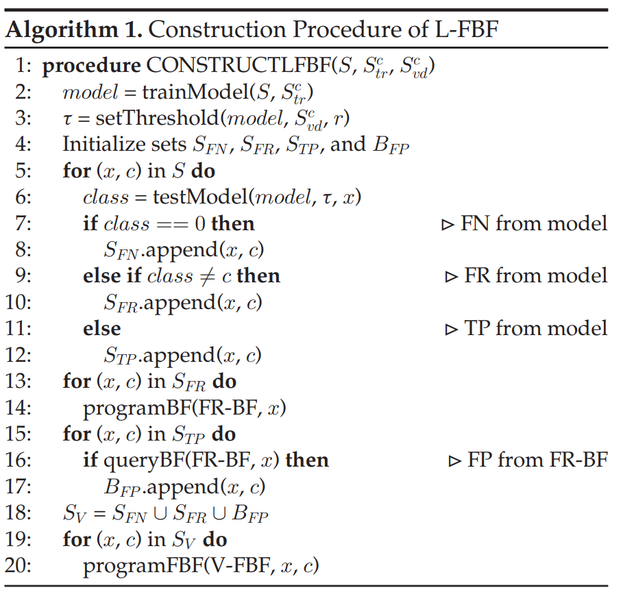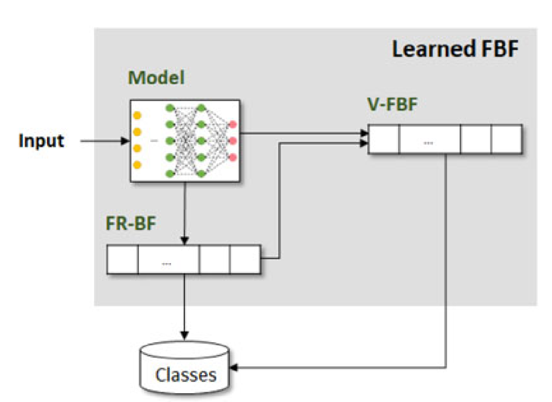 中,学习模型学习给定数据的特征和分布,并对每个输入进行分类。理论分析表明,在相同的内存大小下,
