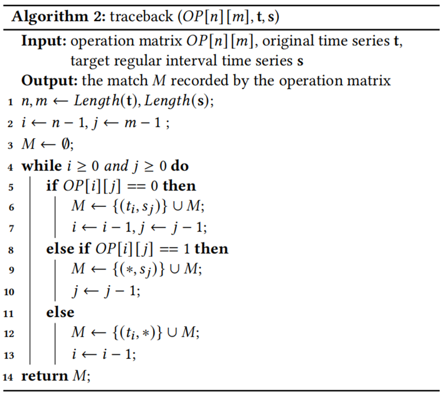 其中dp(i,j)为最小修复成本,Δm为移动成本,Δa为插入成本,Δd为删除成本。算法1给出了找到最小成本的序列的过程。算法2给出了找到最佳匹配的过程。