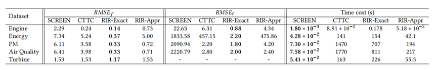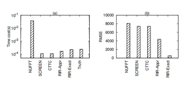 表2:RIR-Exact和RIR-Appr与现有方法相比的𝑅𝑀𝑆𝐸𝑓、𝑅𝑀𝑆𝐸𝑡和时间成本