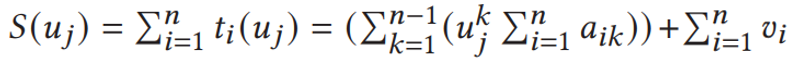 和计算𝑛个值的多项式,ti(u1)…,ti(un),其中aik为筒仓Fi独立产生的随机系数,vi为筒仓Fi的局部计数结果。这些变量仅保存在Fi中,对其他人不可见。之后,每个筒仓Fi将多项式tj(uj)的值发送给所有其他Fi (i≠j)。当任何筒仓Fi从其他筒仓接收所有{ tj(uj)|i≠j}时: