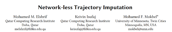 论文提出了TrImpute,一种新型的无网络轨迹插补方法。与其他所有的轨迹推算方法不同,TrImpute既不依赖也不建立自己的底层道路网络,因此称为"无网络"。相反,TrImpute依靠群众的智慧,利用邻近的GPS点来指导每个稀疏轨迹的推算过程。TrImpute可作为各种轨迹应用、操作和系统的预处理步骤,以显著提高其准确性。基于真实轨迹数据的广泛的实验结果,即从实际部署的TrImpute在卡塔尔的4000辆出租车上收集的数据进行实验表明:(1)TrImpute可以高度扩展到城市规模的轨迹推算。(2)TrImpute推算的轨迹与最初的原始密集轨迹非常相似,为了实验评估,论文将这些轨迹稀疏化。(3)TrImpute推算的点在与地面真实地图匹配时具有很高的准确性。(4)当TrImpute被用作原始数据和地图推理算法之间的预处理步骤时,它能够显著提高地图推理算法的性能。