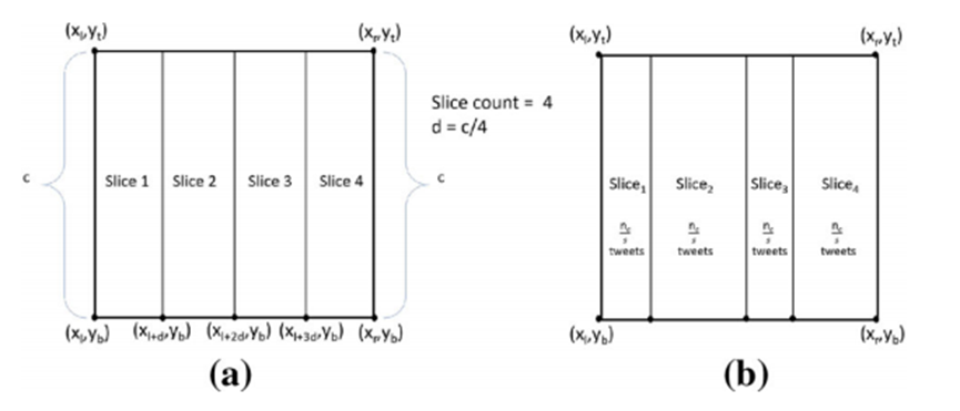 图 5展示了两种切片方式,(a)是每个切片拥有相同的宽度,(b)是每个切片拥有相同的帖子数量,实验结果表明切片方式(b)更优。