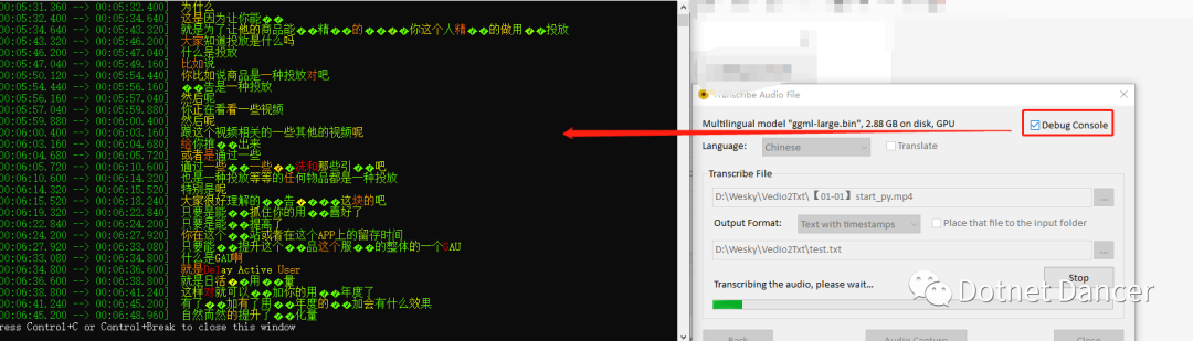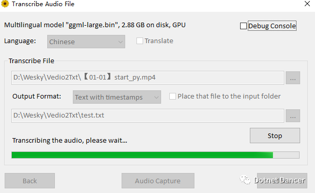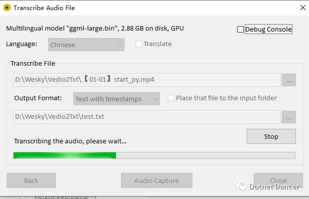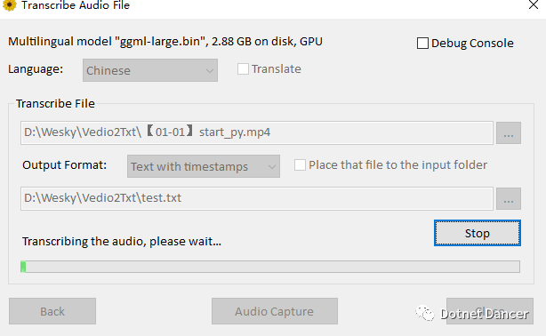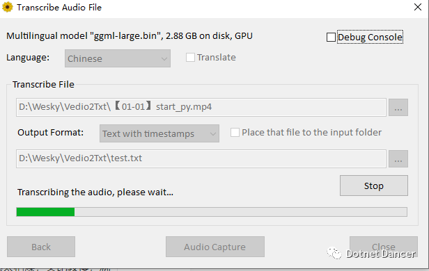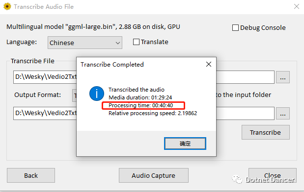 完了以后,点击Transcribe,然后开始执行,电脑也开始轰轰响(毕竟是老古董)