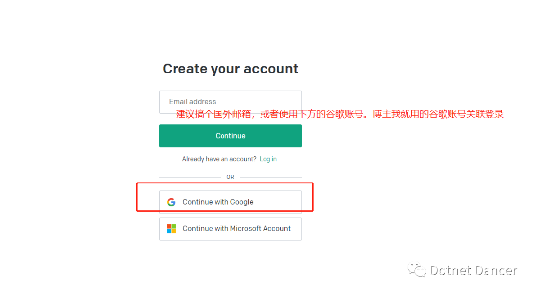 2、注册建议使用谷歌账号关联登录,最方便。微软账号太慢了,也可以使用。注册使用的邮箱,建议使用国外的,例如我直接注册了一个谷歌账号进行使用。使用谷歌需要使用科学的方法,这方面大佬们可以自行解决,此处不宜提供。