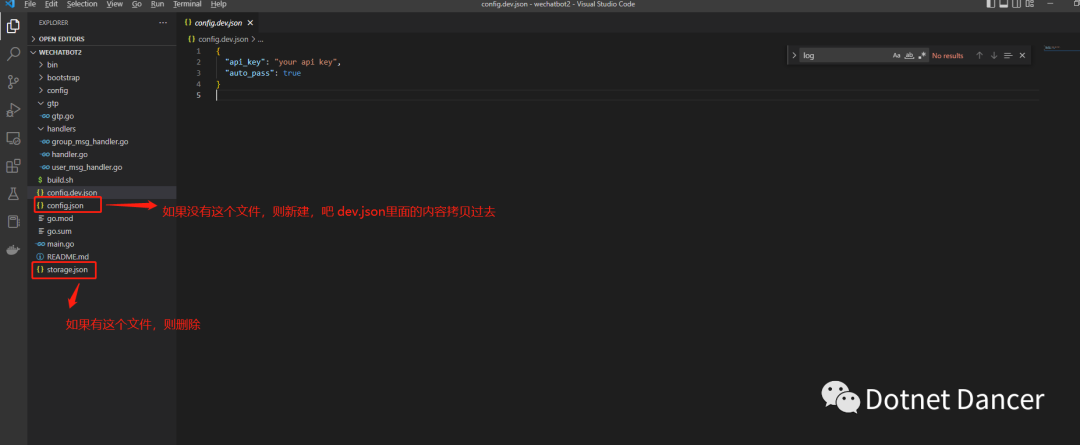 8、在config.json配置文件里面,把密钥粘贴进去。其他的说明,可以看源码里面附带的说明,作者大佬写的很清楚了。