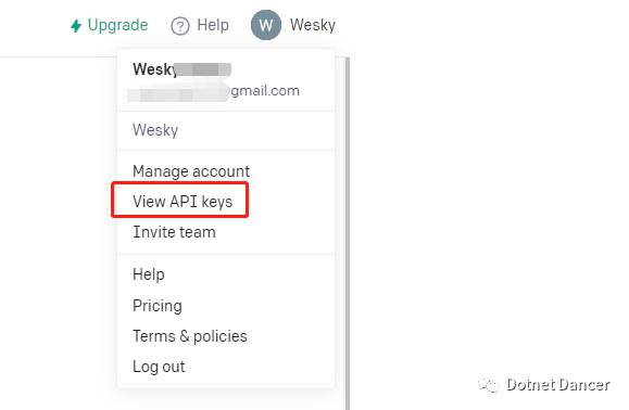 6、然后,登录OPEN AI账号以后,点击个人头像,进入到 查看 API KEYS页面