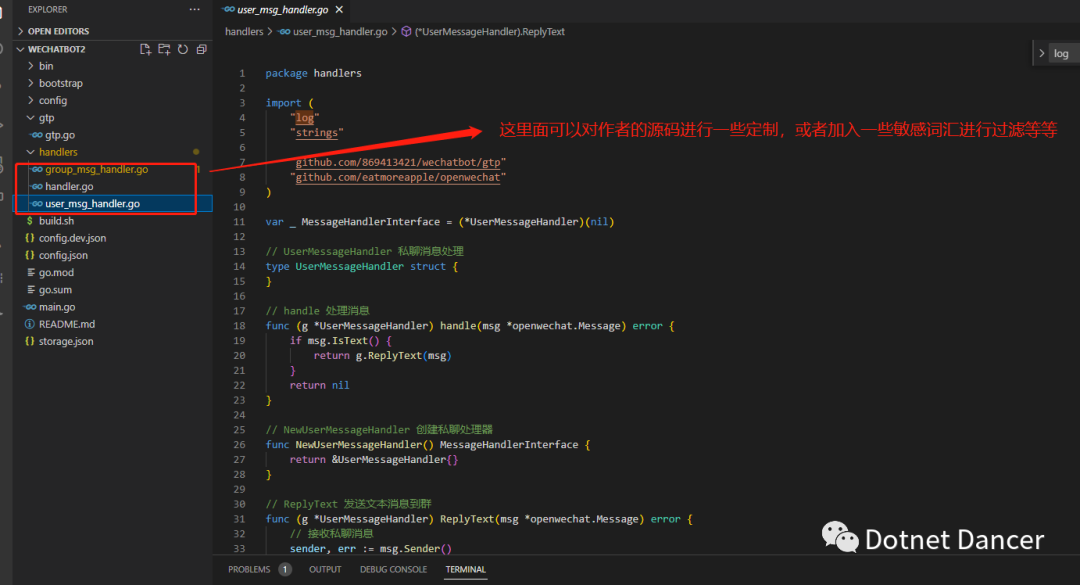 我也从上面开源地址扒拉一个下来,目录结构如图所示。建议本地安装Golang环境先。怎么安装环境,百度一下,很多,就不重复写了。此处我使用的VS CODE来打开。其他内容,见截图说明。