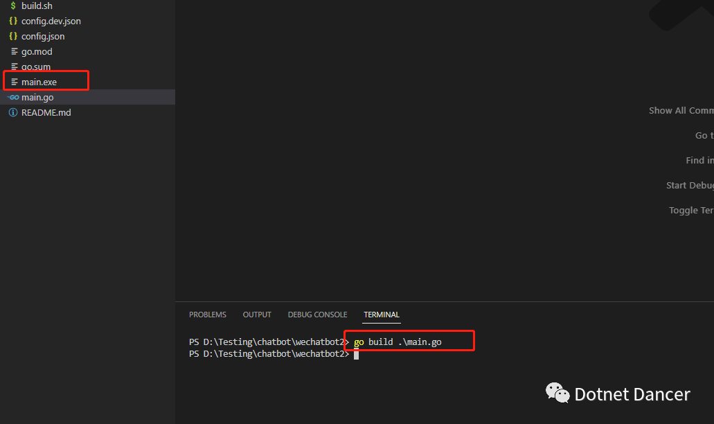 13、修改完毕以后,我们运行肯定不能直接代码运行,要么上容器,我这边是Windows系统,那就直接编译了,做成可执行文件。go build main.go进行编译,生成 main.exe文件