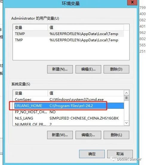 配置环境变量。先新增一个ERLANG_HOME,路径是安装erlang的目录:
