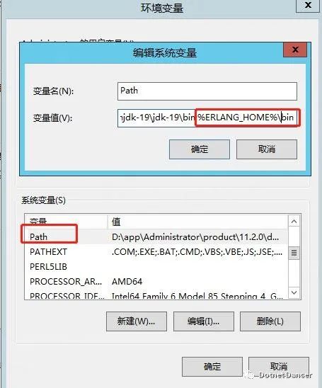 环境变量的Path 里面新增ERLANG_HOME 的bin 目录: