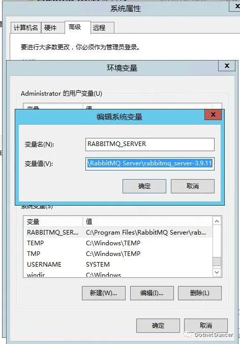 新增RabbitMQ 服务的变量RABBITMQ_SERVER,值是rabbitmq 服务的安装目录:
