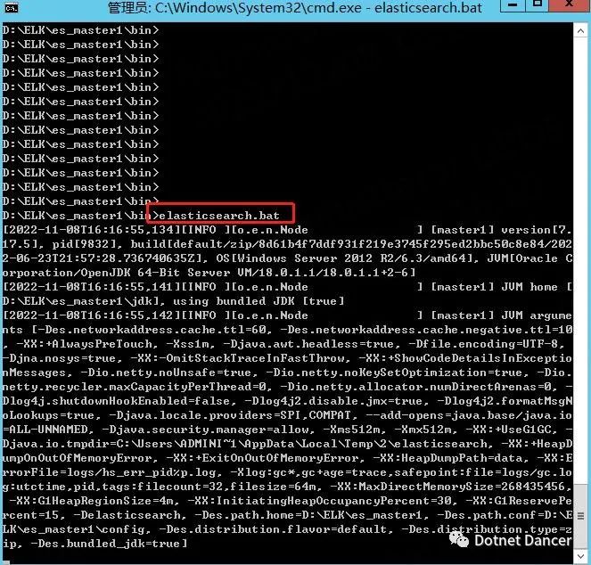 进入到四个es 的根目录下(esxxx/bin),打开cmd,执行elasticsearch.bat 文件: