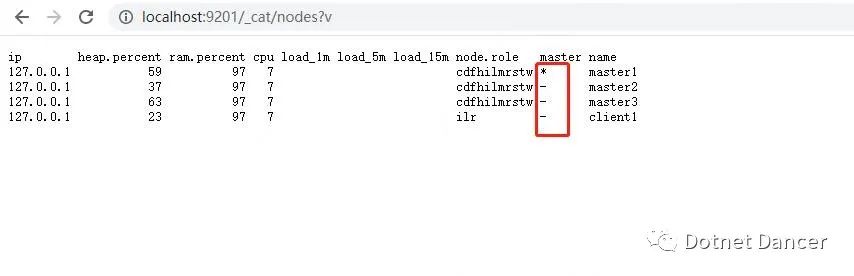 的一个节点的地址,都可以查出来。其中master1 为现在的主节点。