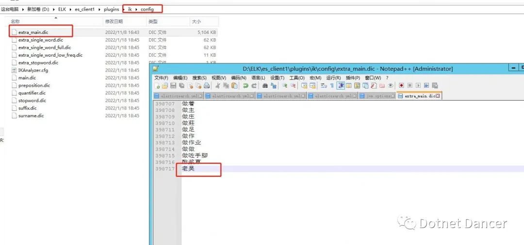 ik 说明:如果有某个关键词汇查不出来,就可以在ik 分词里面进行新增,例如“老吴”。