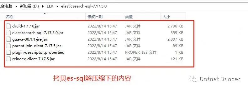 把sql 解压后的内容,全部拷贝到各个es 都sql 文件夹下:
