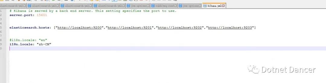 其中,server.port 是对外开放的端口号,默认是5601,此处改成了15601,防止被人随