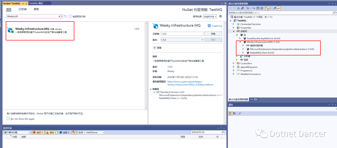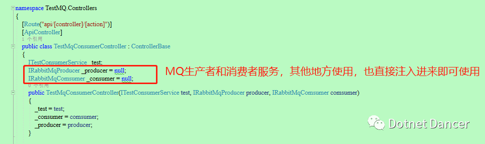 新建一个webapi项目进行测试。并添加引用:Wesky.Infrastructure.MQ