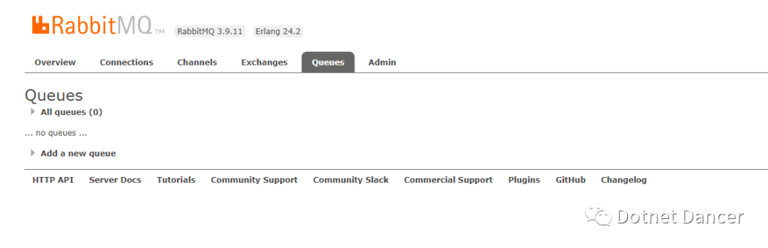 打开MQ面板,可以看到现在是都没有队列存在的。