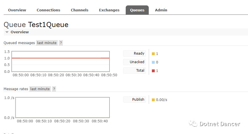以上创建了基础的连接,通过direct模式进行消息订阅和发布;并且创建两个队列,分别是Test1和Test2
