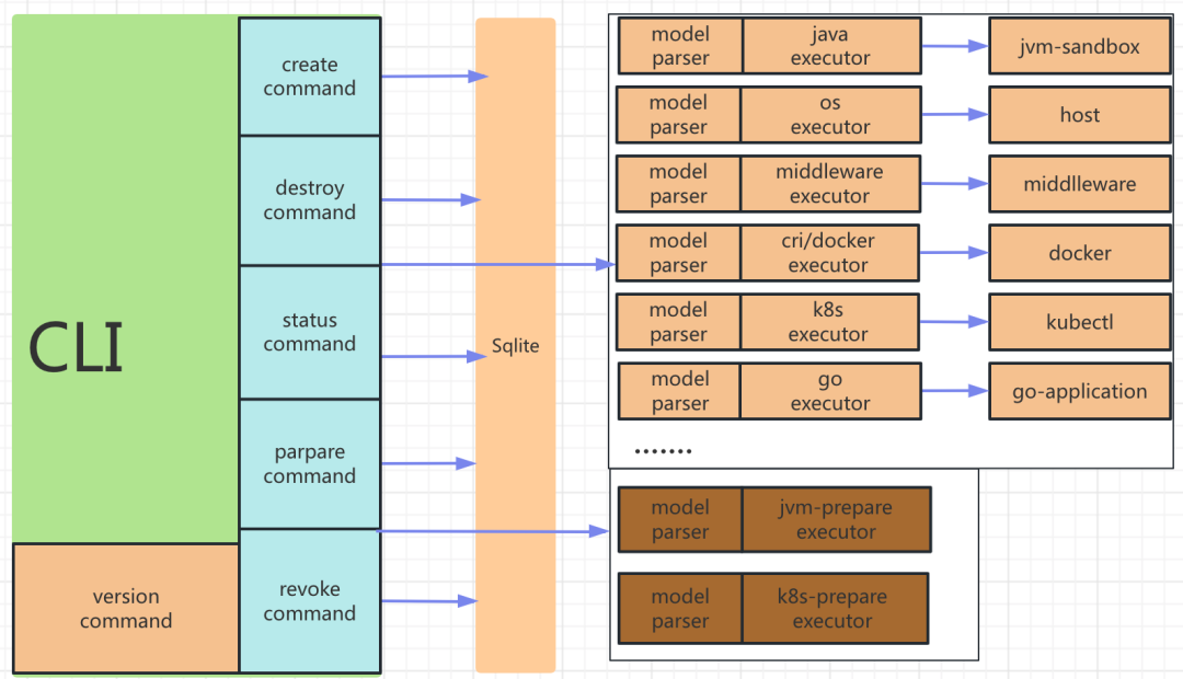 Prepare和 revoke命令调用混沌实验准备执行器准备或者恢复实验环境,比如挂载jvm-sandbox;
