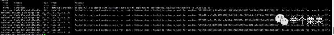 恢复一段时间后,airflow跑任务时,拉起个别的pod没有问题,但是当同时拉起几十个pod跑任务的时候有很多的pod无法启动。报如下错误: