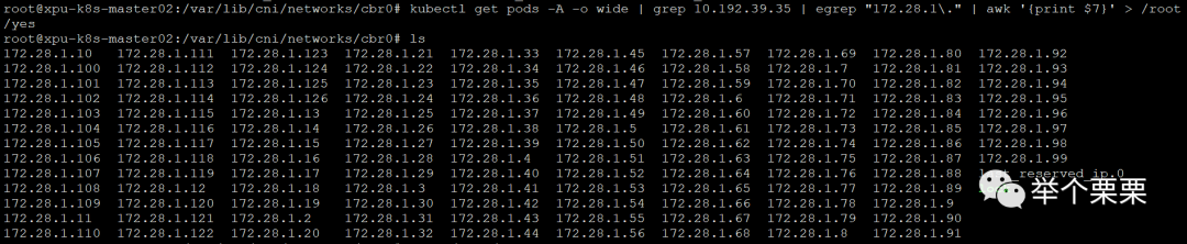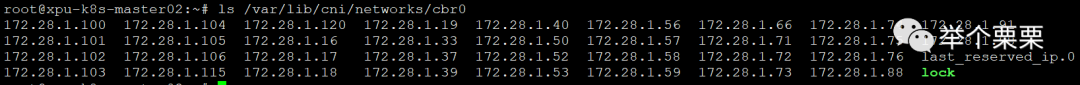 查阅资料后得知,IPAM插件已分配的IP地址保存在/var/lib/cni/networks/cbr0文件中。如下: