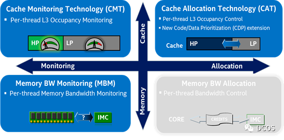这些技术可以监控和控制应用程序、容器或在平台上同时运行的VM使用的共享资源,例如LLC和主存储器(DRAM)带宽。Intel RDT可能有助于检测“noisy neighbor”并减少性能干扰,确保关键工作负载在复杂环境中的性能,是解决云原生中“noisy neighbor”问题的关键技术。