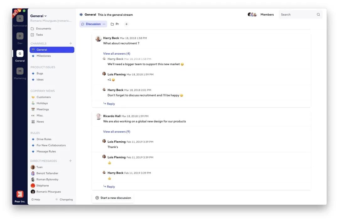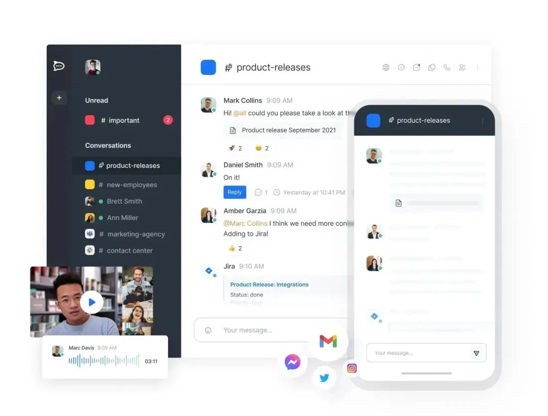 的功能。可以选择将你的使用限制为文本、语音或视频交互的频道。如果需要,你也可以使用它来管理你的团队/公司的文档、管理待办事项清单,也可以创建看板项目。