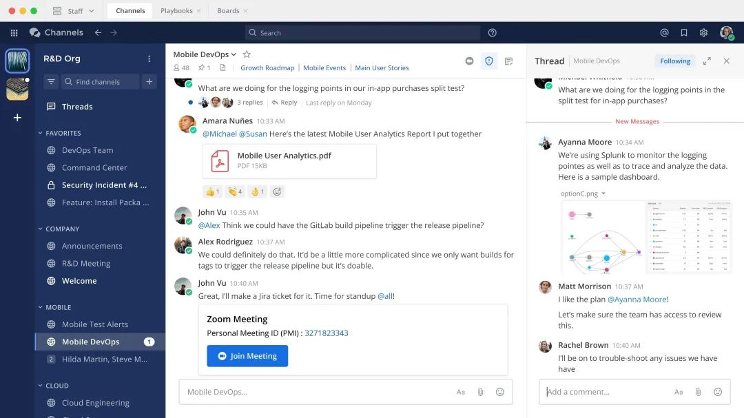高级的对话功能 支持自托管 与 Matrix 的集成支持 包括 GitHub 在内的第三方集成 跨平台 提供免费和付费选项