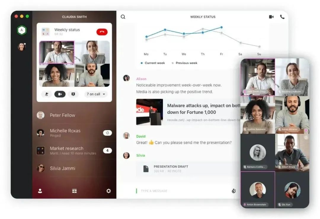 集成支持实时翻译 音频/视频会议 第三方集成 支持 Matrix 集成(去中心化) 支持自托管 提供免费和付费选项
