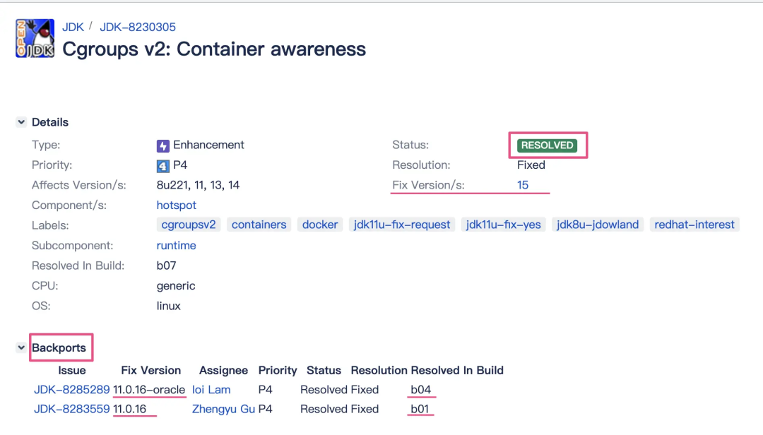 关于 Cgroups V2 的一些支持细节具体请查看 https://bugs.openjdk.org/browse/JDK-8230305