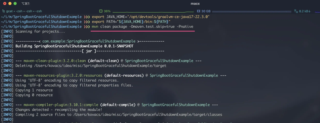 上面介绍的用于测试优雅关闭的项目已经内置了 GraalVM 支持, 只需要下载 GraalVM 并设置 JAVA_HOME