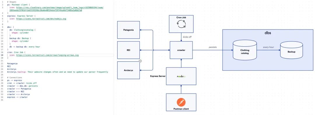 D2 的设计目标只有一个:把流程图变成工程师的愉快体验,很多工具对简单的图表可以做到这一点,但是当你接触到稍微复杂的流程图的时候就非常困难了。