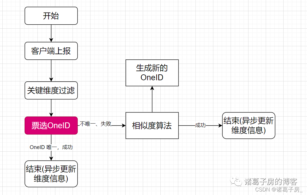 《阿里巴巴大数据之路》中有讲到关于数据中台OneData 的方法论,其中分别涉及到OneModel、OneService、OneID。OneService 在之前的文章中已经有过分享,参考:某互联网大厂亿级大数据服务平台的建设和实践引言中所提到的小故事其实就是本文着重要分享的关于OneID 的部分例子一:我用我自己的电脑搜索小米11,我又用这台电脑浏览其他网站,然后这个网站给我弹小米11的广告,对,也许你认为这种都是同一台电脑,非常简单,只需要根据ip等相关信息进行匹配就可以了。例子二: 我用我自己的电脑搜索小米11,然后用自己的苹果手机,去浏览其他网站,然后其他网站又给我弹了小米11的广告,这怎么识别的呀?我们认为这台电脑、这部手机、以及其他的电子设备是可以构成一个唯一的ID,即:OneID但是你一定会问了,那他们是怎么关联上的呢?而不会关联错呢?比如说没有把我在电脑上搜索的小米11,推到我的手机上,而不是推到我女朋友的手机上当使用安卓手机安装app,启动时会上报 IMEI,Mac地址 ,AndroidID,手机型号等设备信息同理ios 会上报相关启动信息 idfa,手机设备等信息;pc 浏览器端会上报 cookie、浏览器相关信息。但是每一次上报的信息不一定完全相同,比如说手机权限问题,浏览器cookie 清空等问题。LocalID:app 启动会根据AndroidID生成本地id(不需要连网),记录为本地IDOneID:app 联网上报的设备相关信息,用来打通多个app以及多端应用的唯一ID(1)打通手机上多个app,比如说:淘宝、支付宝、高德等等是同一个用户(未登录时,登录时用账号id)(2)打通多端应用,比如说你在手机端看剧,然后pc web 端能知道还是同一用户(解决账号共享无法定位同一用户的问题)安卓端表映射表结构(android_id_mapping),其他端类似:OneID imei mac_adress android_id oaid本地id 和 OneId映射表结构(local_id_mapping):(2)为了应对高并发场景,将HBase 提前预热至Redis 缓存,redis 表设计imei_value oneid1,oneid2...mac_address_value oneid1,oneid2...根据客户端上报的参数信息去redis 里面匹配OneID,核心权重设置问题一:我在百度(或者京东、淘宝)上搜索一件商品(比如说:我搜索了一台iphone 手机看了看,但是没买),奇怪的是过两天,我竟然在某视频平台或者某网页上又看到了它?在视频平台看视频的时候,获取到浏览器的cookie等相关信息,通过调用百度的服务去匹配同一个设备的最新的搜索数据,然后进行广告投放,做到千人千面问题二:而且更加奇怪的是,我明明是在电脑pc 端搜索的手机,但是我在手机上看电影的时候却能看到它,是不是也太奇怪了。手机端装了看电影的app,同时我在pc web 端之前也在该网站有观影信息,结合账号信息+设备信息+观影信息,生成一个OneID,打通该视频网站,所有端的数据。后续我在pc web 看电影获取当前唯一id的所有端的信息,然后调用京东或者淘宝的广告服务,进行投放。历史用户画像系列文章: