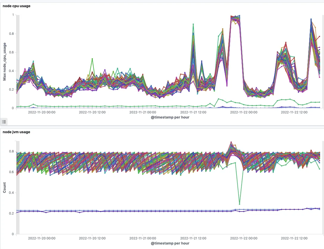 2. 其次需要关注是否有长耗时的查询任务 跟查询拒绝率,当这些指标出现异常时,说明大概率出现了大查询,导致查询线程池长期被占用,需要分析大查询并进行优化。