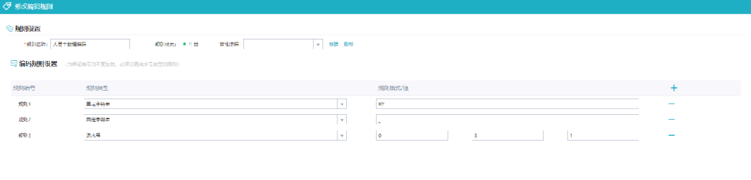 当确定编码规则后,如何通过软件进行管理呢?亿信华辰睿码主数据管理平台作为一款主数据管理软件,也是可以进行编码管理的,如下图所示是编码规则的制定,在这个过程中,看到有许多种规则,包括固定字符、流水号,以及从数据层进行取数,这样的编码方式可以覆盖更多的场景,包括顺序码、层次码以及组合码。