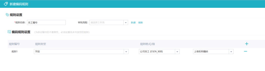 可以选择主数据模型视图中的对应的字段,对应字段的值为所生成的编码。