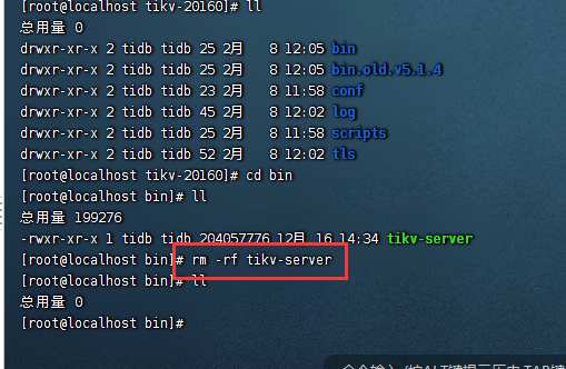 在升级后,重启集群前,去其中一个节点下把tikv目录删掉 。
