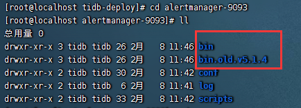 cd /home/data/tidb-deploy/alertmanager-9093 //就是deploy dir