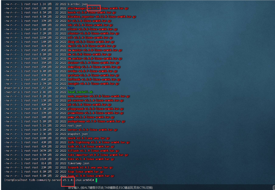 本次升级将v5.1.4版本的集群离线升级到v5.1.5集群,离线升级参考:使用 TiUP 升级 TiDB | PingCAP 文档中心(https://docs.pingcap.com/zh/tidb/stable/upgrade-tidb-using-tiup),并模拟故障,导致升级过程中升级失败,然后再成功回退至v.5.1.4版本集群