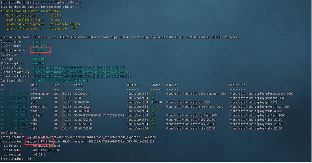 经过验证在v5.1.4升级到v6.1.0的过程后,详细检查发现监控节点依旧没有进行更新,还是v0.17版本,直接部署v6.1.0集群会是V1.3版本的node_exporter,这里暂且也不用回退