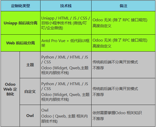 前端技术栈和Odoo松耦合, 前端开发人员无需过多了解 Odoo 技术栈知识