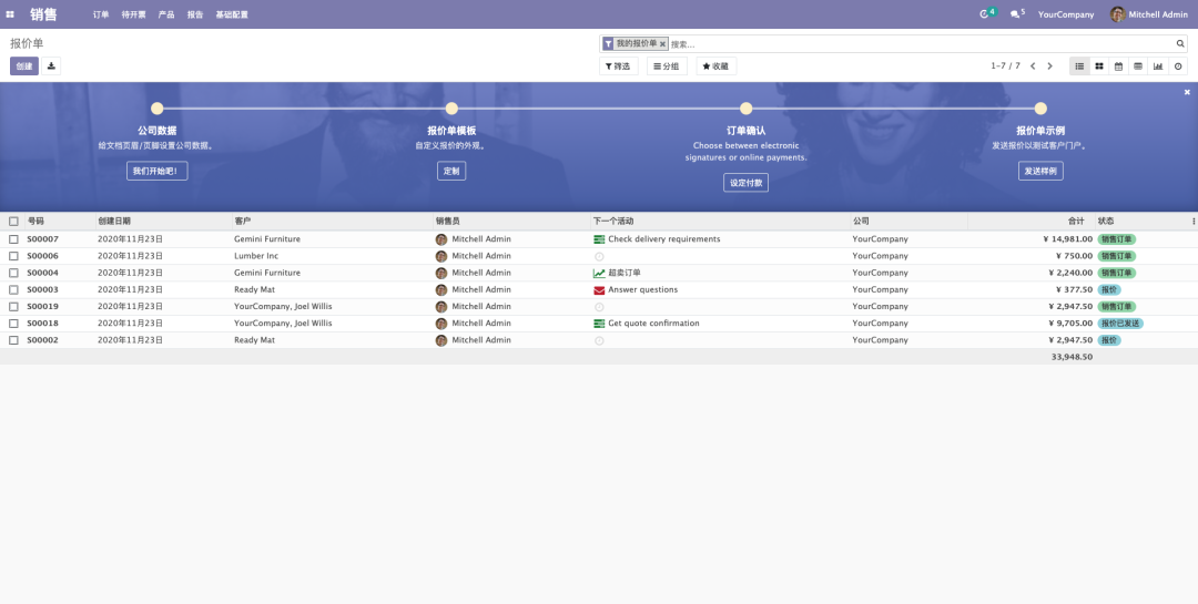 Odoo Web 客户端对业务应用提供完整的支持,包括登陆会话、导航菜单、数据列表和表单等等。虽然定制化程度受到约束, 但是能很容易创建一致性的用户体验。