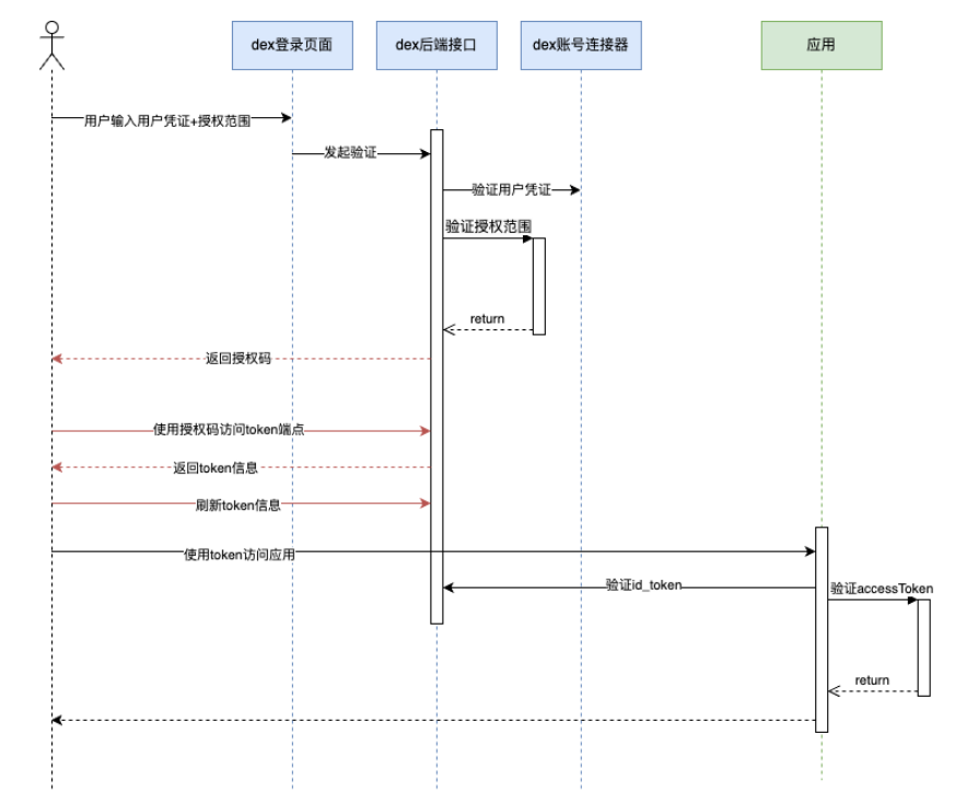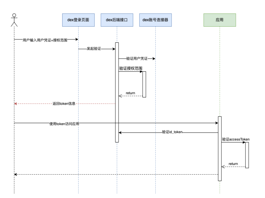 Step 5:DEX认证成功,返回AccessToken,RefreshToken,IdToken;