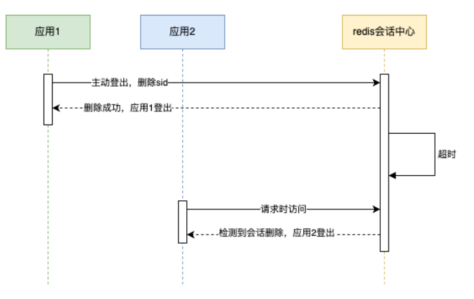 Step2:应⽤1,应⽤2全部不操作时,失效全局会话(redis的超时机制);