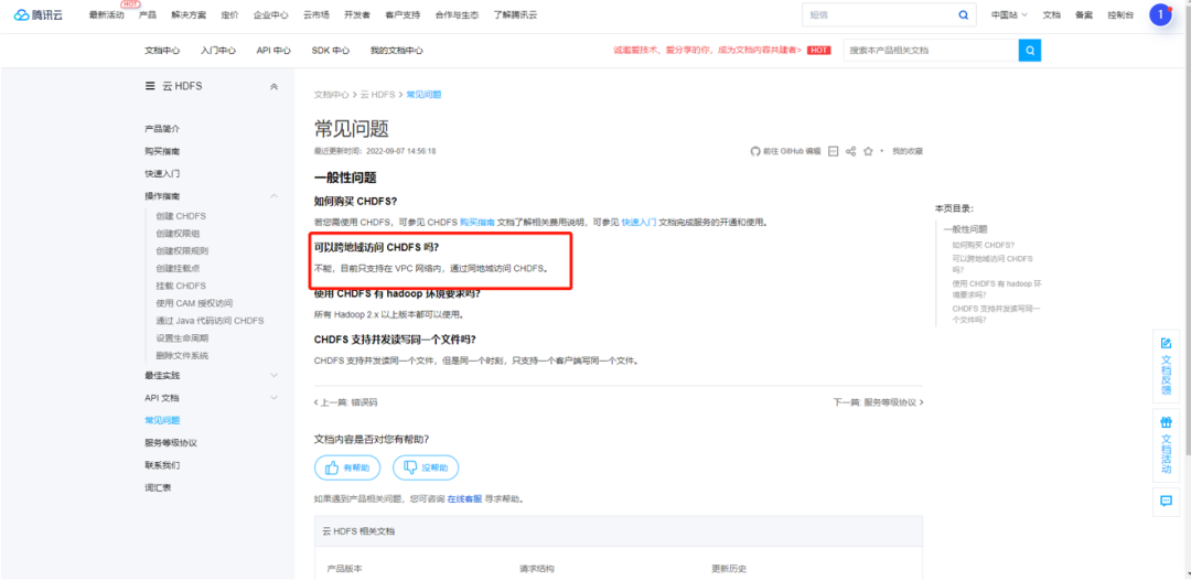 因为 CHDFS 只能支持同VPC网络内,通过同地域访问CHDFS。