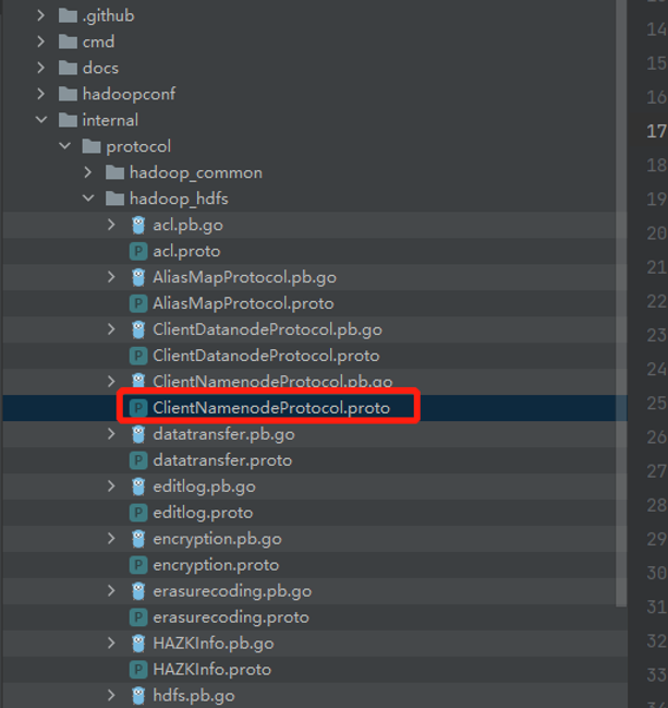 以此来查看命令行是通过哪个RPC接口来进行调用的,并将对应的proto文件拷贝到HDFS包内,然后通过 protobuf 命令来生成go文件,从而来调用与FsShell.java部分相同的RPC接口来实现仿照命令行的RPC调用,最终来实现对CHDFS的操作。