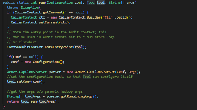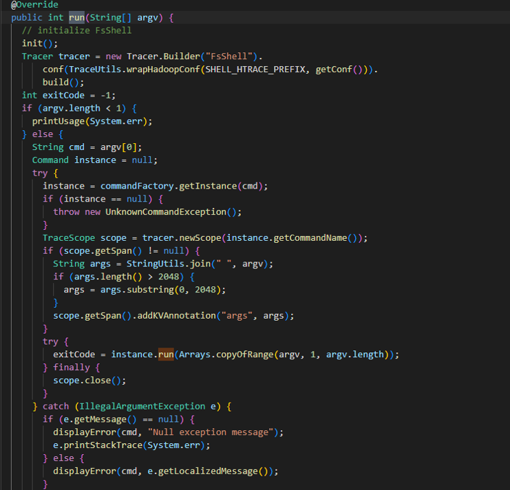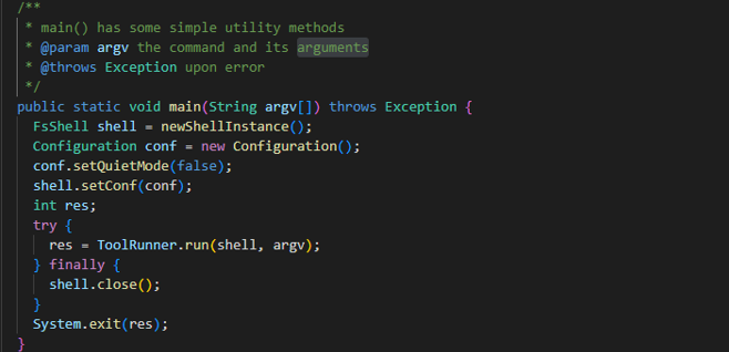 通过上边的推断,实现 Juicesync 调用 CHDFS 的思路就是查看 Hadoop 的 FsShell.java 部分的代码。
