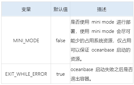 通过 Docker 命令可以查看到镜像的信息,说明镜像拉取成功。OceanBase 镜像提供了两个可以设置的环境变量: