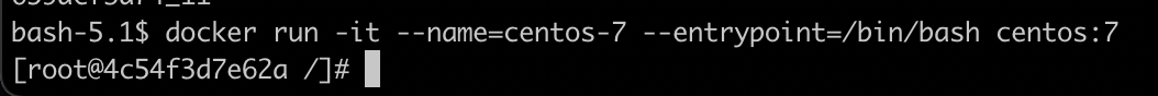 docker run -it --name=centos-7 --entrypoint=/bin/bash centos:7